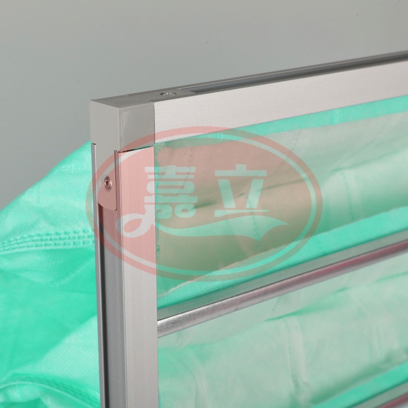 5、结构独特。外框采用专用铝型材或镀锌板框,便于完全回收、利用、优质U型铝合金压条,使滤袋结构阻力低,使用奉命长。